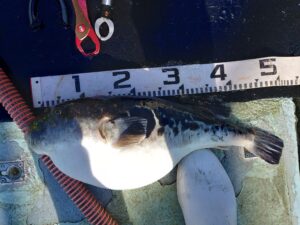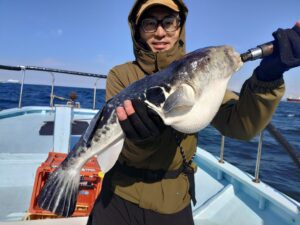 マダイ 0〜2枚 船中16枚(塩焼き〜1,2kg) トラフグ2,8kg ホウボウ