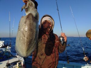 モンゴ 0〜3杯 船中17杯(0,6〜1,6kg)スミイカ アオリ混じる