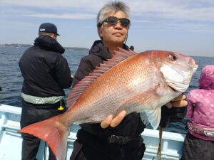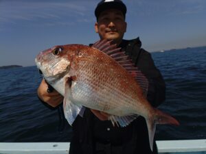 マダイ 0〜4枚船中8枚(0,7〜1,1/1,2/1,9/2,1/2,6kg) トラフグ2.6kg ホウボウ