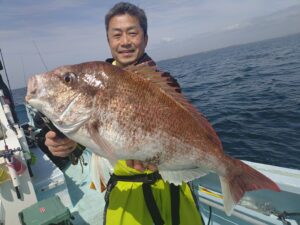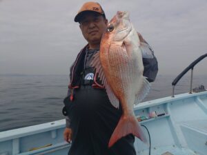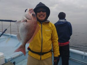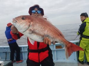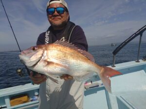 朝イチにレンタルタックルレンタル鯛ラバセットのお客様が4,8kgの大鯛ゲットで始まり本命はポツポツでしたが外道のホウボウが今日は皆キロ凸凹でデカイ〜